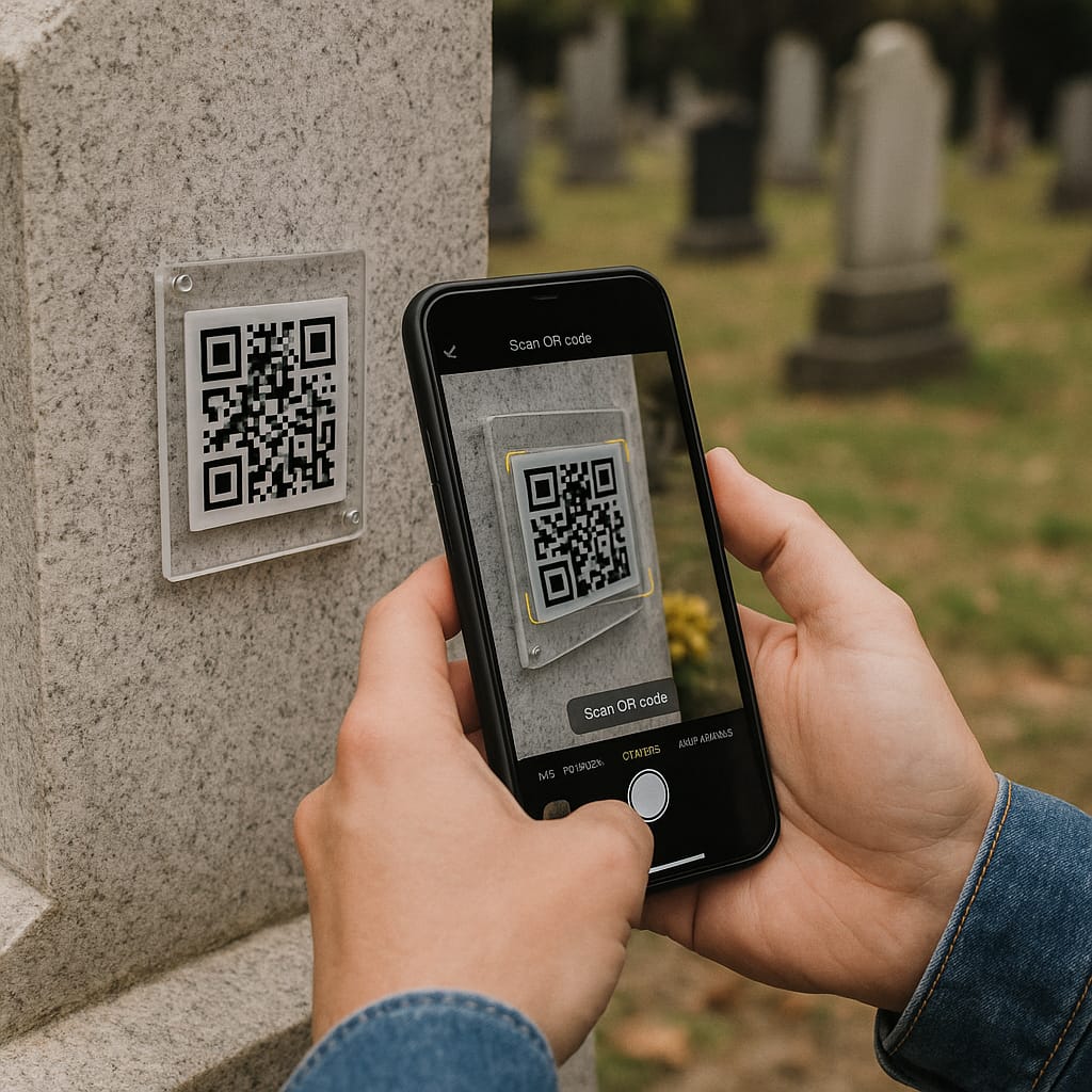 Te enviamos la placa de acrílico con el código QR personalizado para tu memorial.